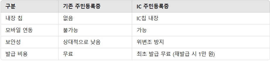 📌 IC 주민등록증 vs. 기존 주민등록증 비교