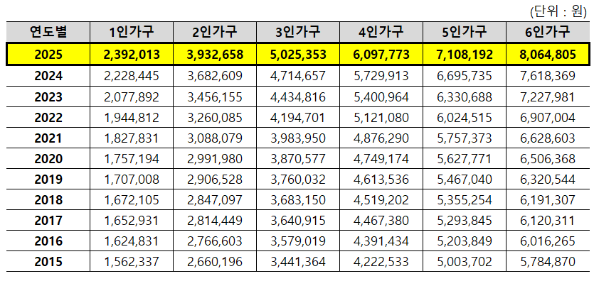 (3) 기준 중위소득은 통계청 통계자료의 가구 경상소득 중간값에 최근 가구소득 평균 증가율 등을 반영하여 산정 (법 제6조의2 제1항)