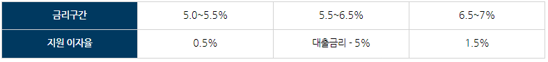 1. 지원 대상 차주 : 중소금융권( 저축은행, 농협, 수협, 신협, 산림조합, 새마을금고, 카드사, 캐피탈사)에서 5% 이상 7% 미만 금리로 사업자 대출을 받은 개인사업자 또는 법인 소기업