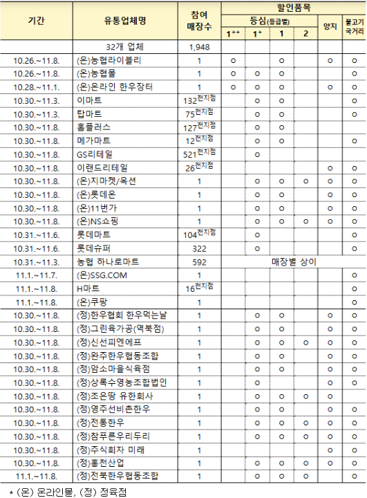 매장별 행사 세부일정은 한우자조금, 전국한우협회, 농협경제지주 누리집에서 확인할 수 있습니다.